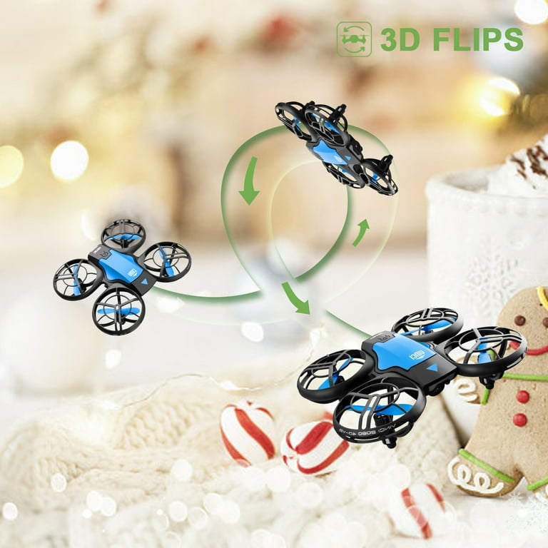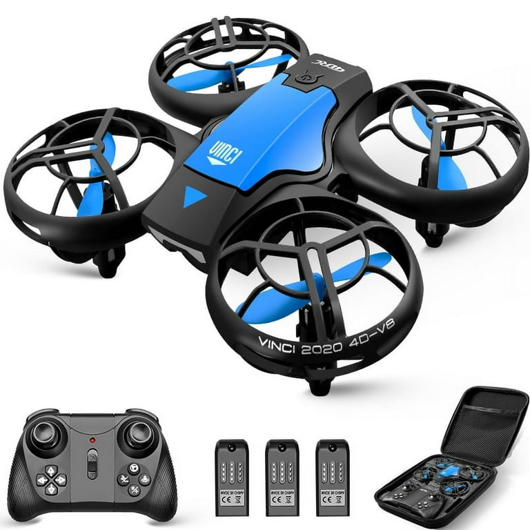 4DRC V8 Mini Drone, Suitable for Children and Beginners, 3 Batteries and Storage Bag, Height Hold, Headless Mode, 3D Flip and Auto Hover, Blue