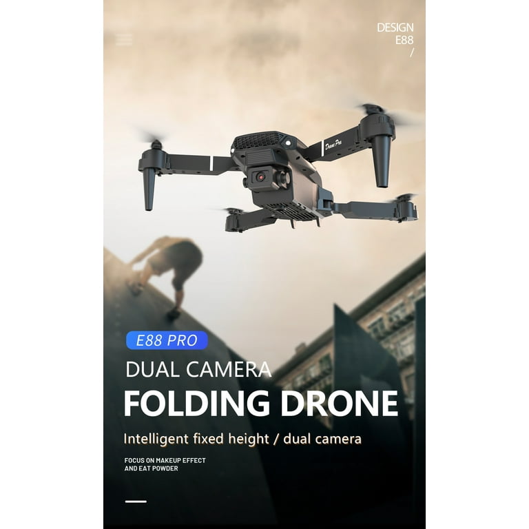 - Foldable drone, full range of accessories, thoughtful design - package includes a portable bag for easy outdoor travel. Equipped with batteries, enjoy longer flight times and enjoy long hours of fun. It comes with a remote control battery, propeller guard and spare fan blades, so you can use it safely and reliably right out of the box. The powerful motor ensures safe and reliable operation with built-in overcurrent protection. The folding body makes the drone small and portable.
