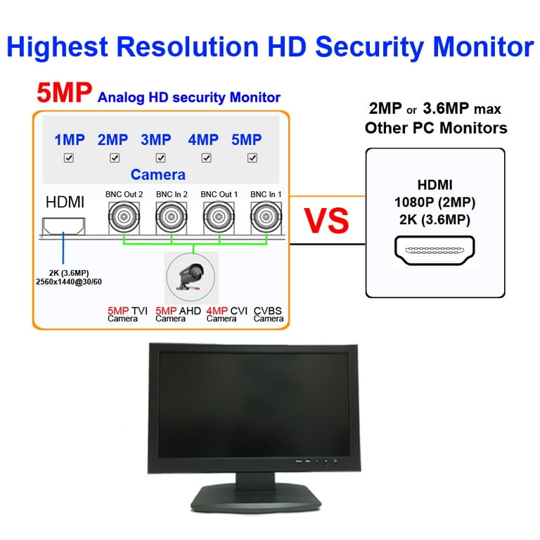 1stPV CCTV Display Monitor for Security Camera System 19.5" 3D Analog Full HD 16:9 5MP HDMI BNC VGA 5MP DVR NVR Home Office Network Camera Direct Connectivity and Highest Resolution