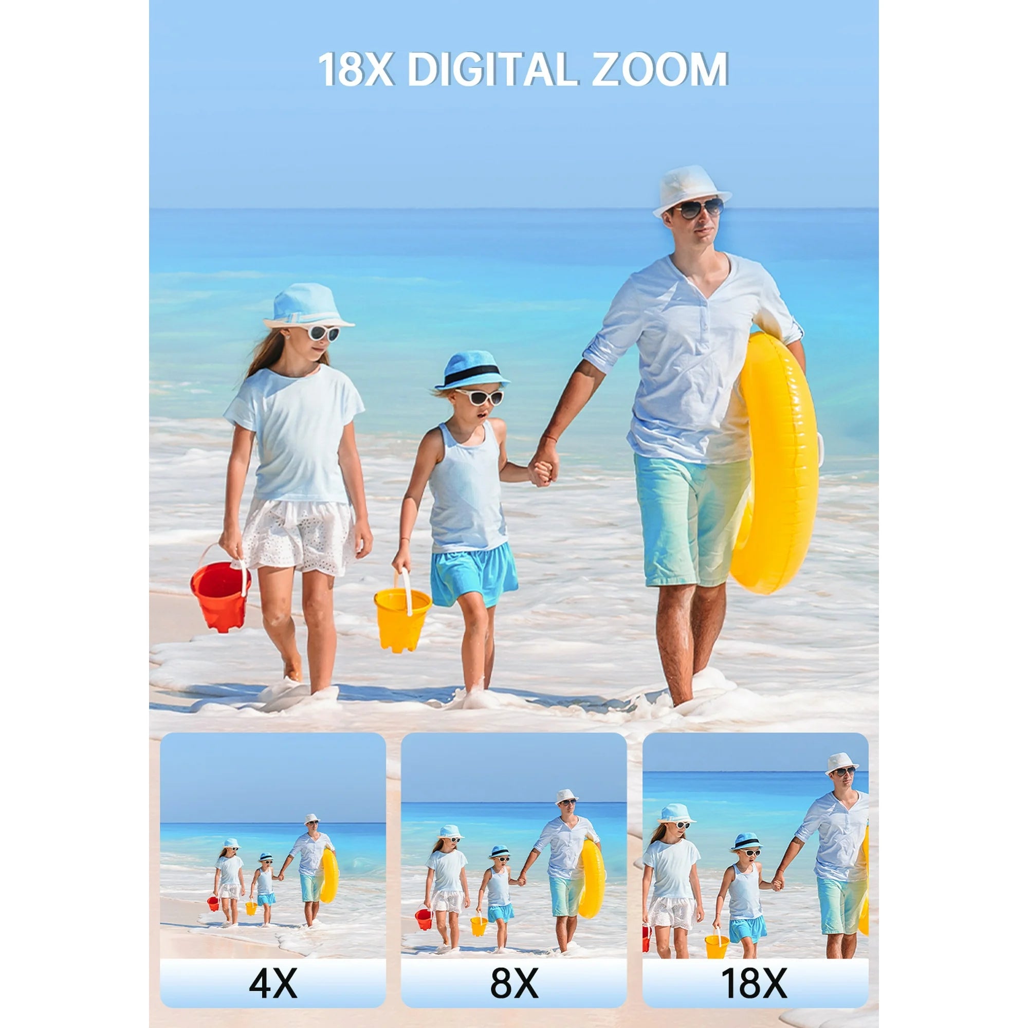18X Digital Zoom:Zoom in up to 18X for clear close-ups of distant subjects.【For best results, shoot within 9.8 feet without zoom (no need to magnify).】