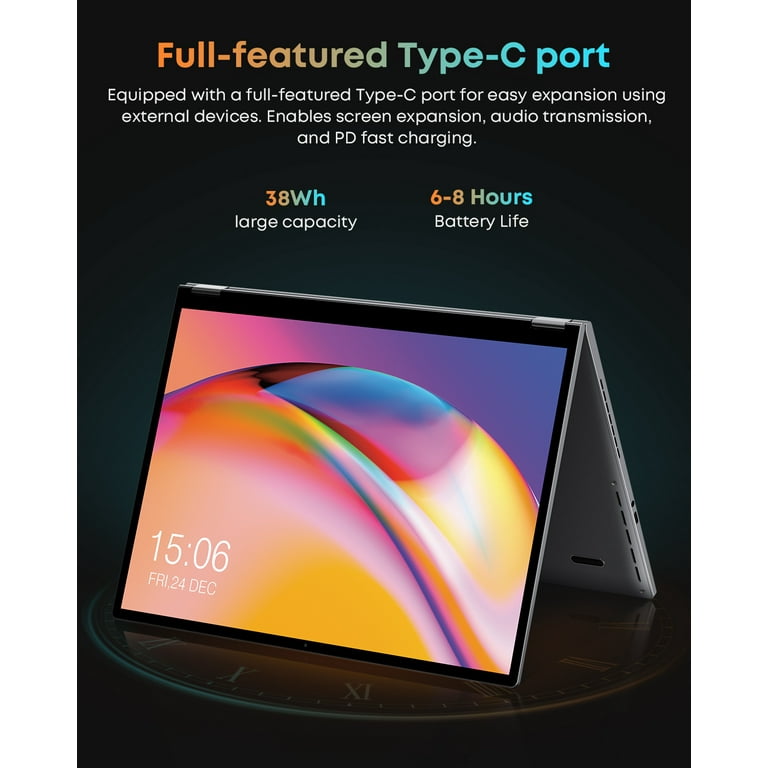 - Long Battery Life: Built-in 38Wh high-density polymer lithium battery, providing 6 to 8 hours of usage with PD fast charging support.