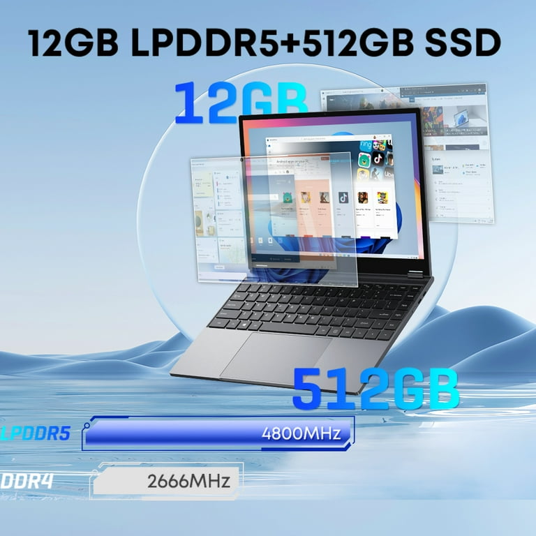 CHUWI FreeBook 13.5" Touchscreen Laptop 512GB SSD 12GB RAM,Intel Quad-Core N100(Beat to Core i3-1115G4, Up to 3.4GHz),Windows 11,2 in 1 Gaming Tablet Notebook Computer,IPS Display
