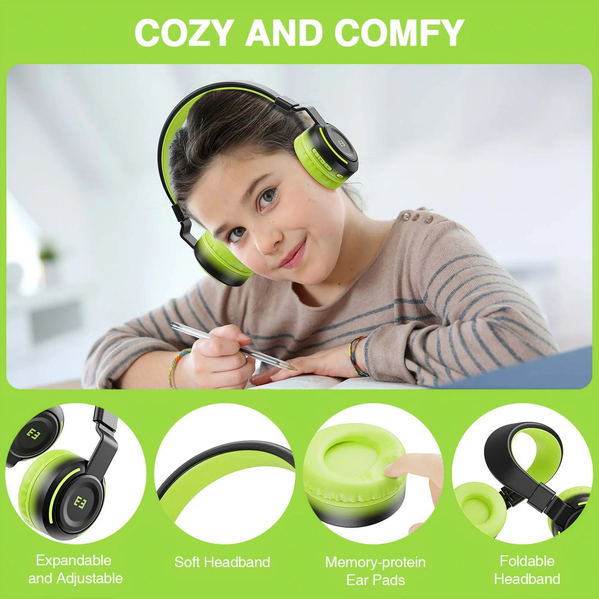 The Seenda kids bluetooth headphones are unique, with a safe volume of 85/94dB and beautiful LED lights, which can bringing extra fun for your kids and protect your child's hearing while giving them the best musical experience possible! The Seenda kids bluetooth headphones come with a microphone so that kids can take calls from grandma or friends hands-free! The headphones' Memory-protein ear pads can keep your head comfortable all day! The most important thing is that The Seenda kids Bluetooth headphones have two operating modes: wired or wireless. If you use the bluetooth connection, it can run for up to 35 hours. When you can't use bluetooth, you can also connect the headset cable, which let you use it anytime and anywhere. The Seenda kids bluetooth headphones is the best gift you can give your children for the school season! Get it, let your kids love it!